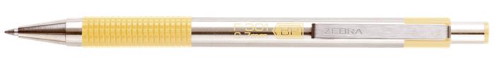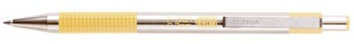 Guľôčkové pero, 0,24 mm, stláčací mechanizmus, nerezová oceľ, farba tela: pastelová žltá, ZEBRA "F-301", modré