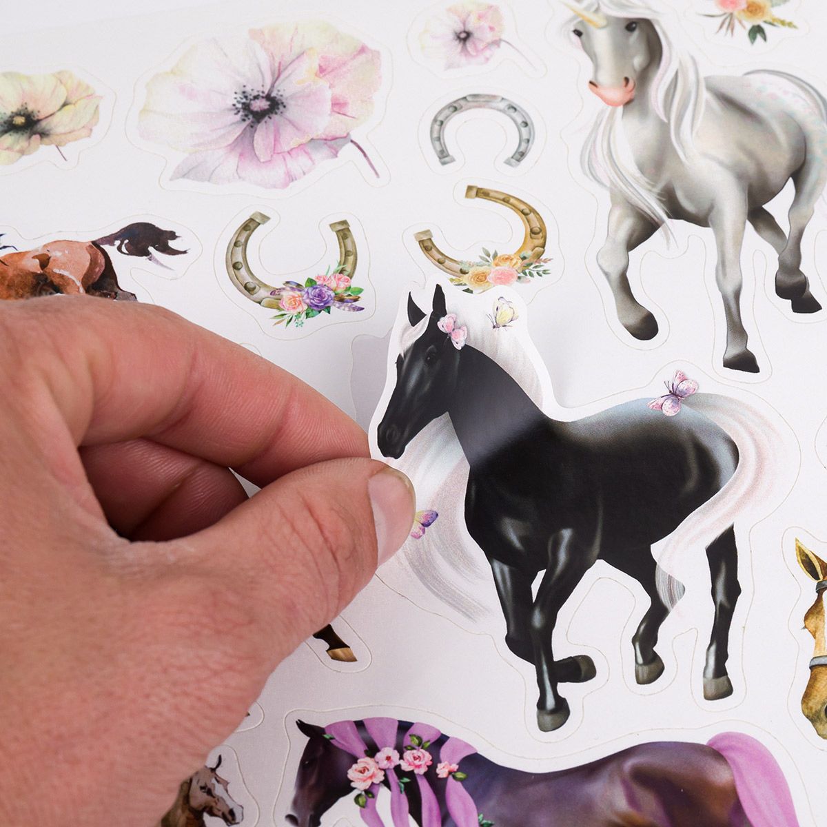 Samolepky s motívom koní a jednorožcov na kufríky a dosky na zošity Topgal.