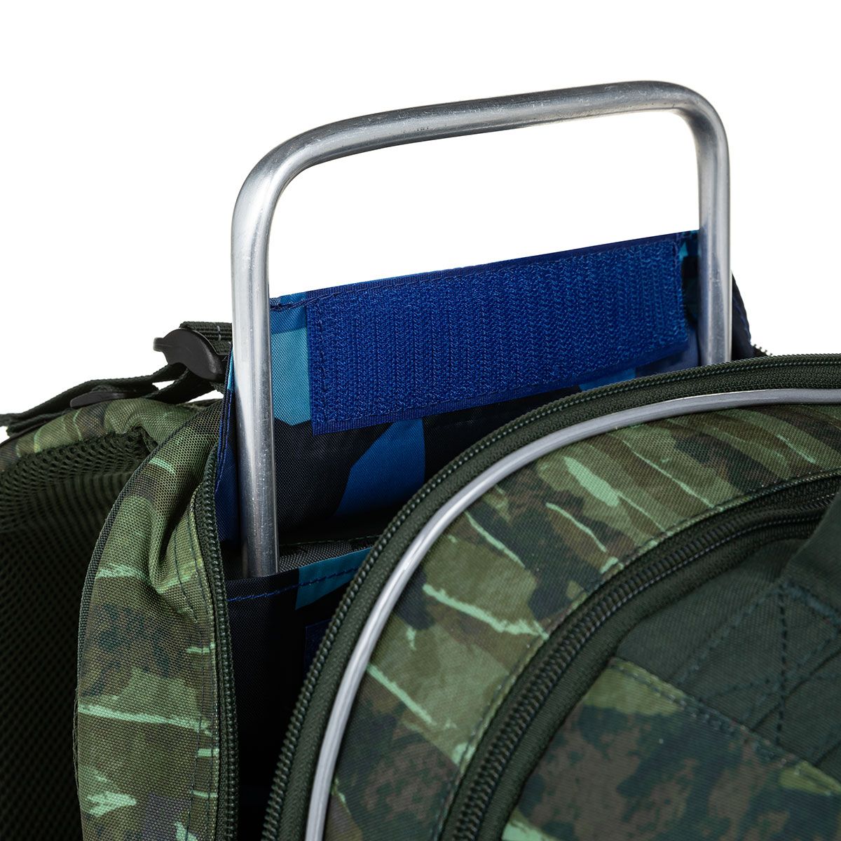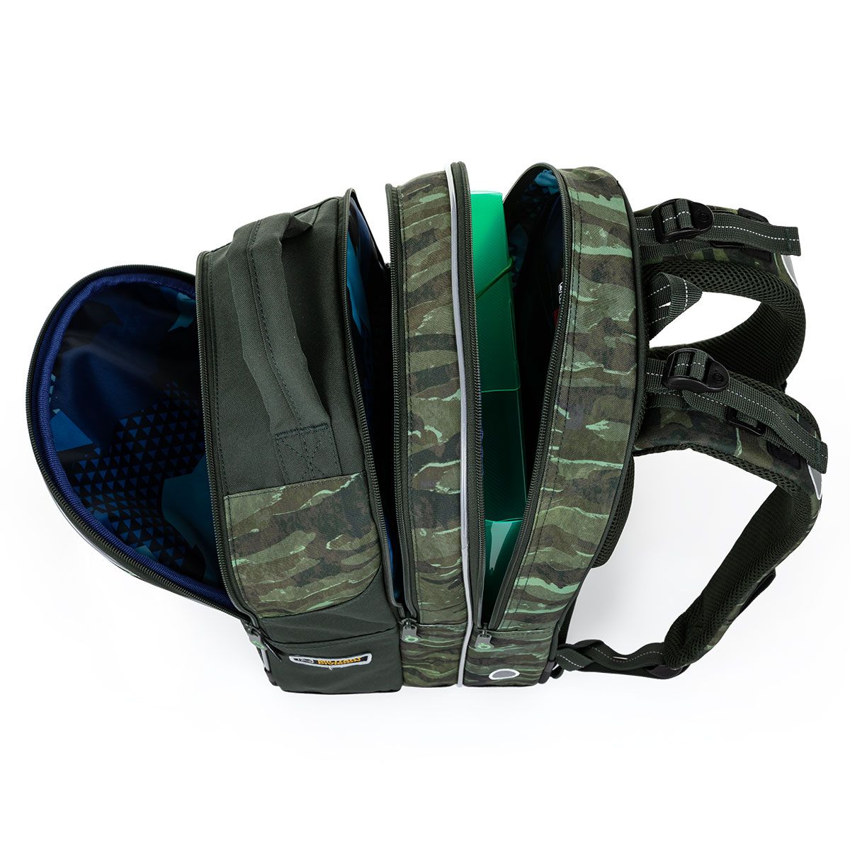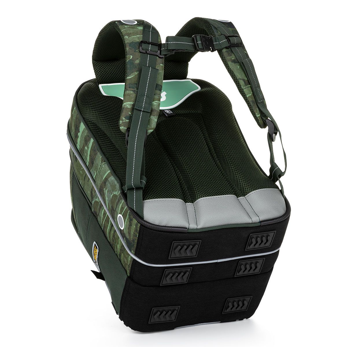Khaki taška s tromi komorami, nesmrteľným maskáčovým vzorom, vojenským odznakom a silnými magnetmi. Ideálny spoločník pre deti od 120cm do prvej až piatej triedy.