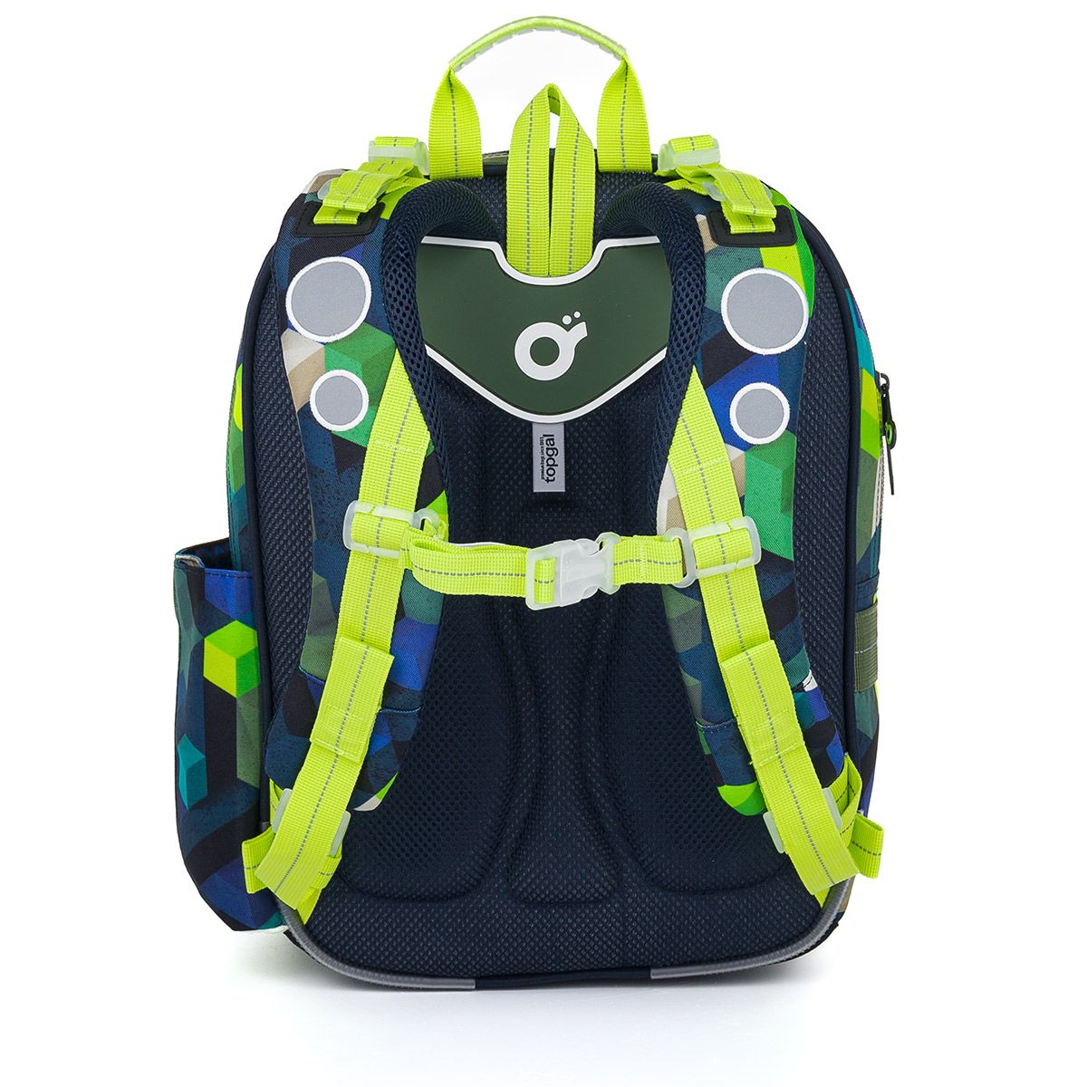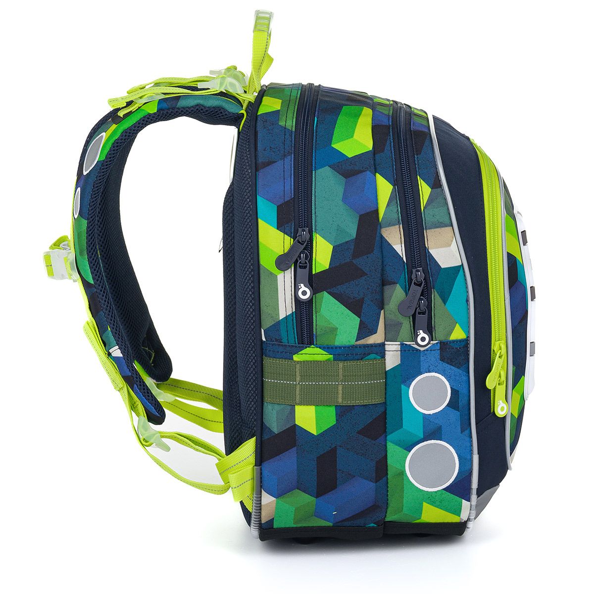 Taška má dve priestranné hlavné komory. Najťažšie učebnice alebo zošity si môžete uložiť do najširšej zadnej komory. Predná komora je o niečo užšia, vnútri je ukryté malé sieťované vrecko na zips a menovka.