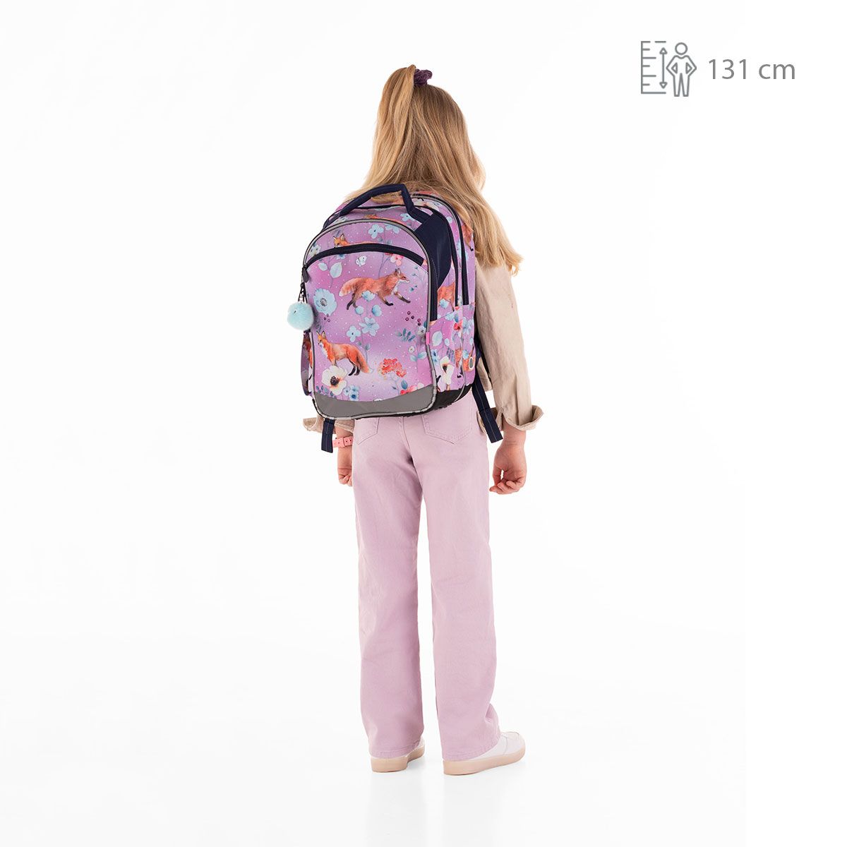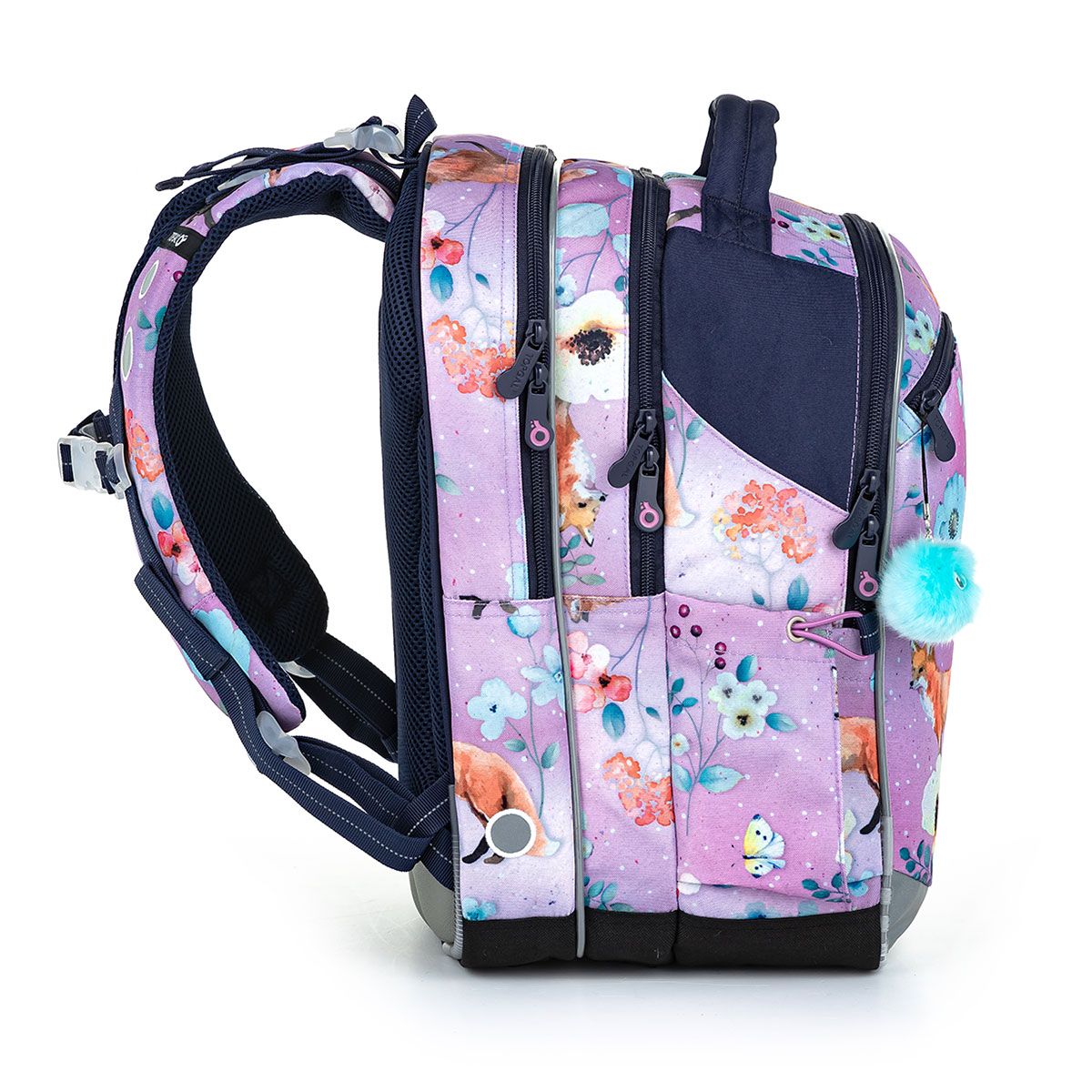 Taška COCO je vďaka trom komorám zrejme našim najuniverzálnejším strihom z celej kolekcie školských tašiek. Vyhovuje ako prváčikom, tak aj piatakom, vďaka svojmu objemu. Tento rok na akvarelom poňatom motíve s líškami a kvietkami na fialovom pozadí.