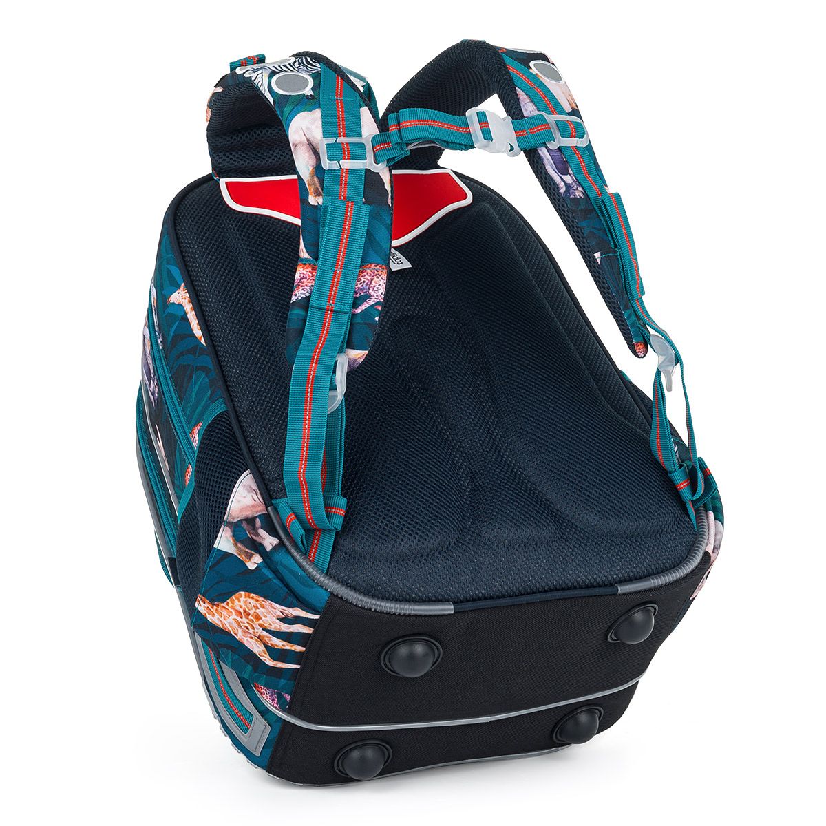 Tmavá školská taška so zvieratkami zo Safari je vhodná pre chlapcov od výšky 115 cm. Detailne prepracovaný batoh sme doplnili štýlovou nášivkou.