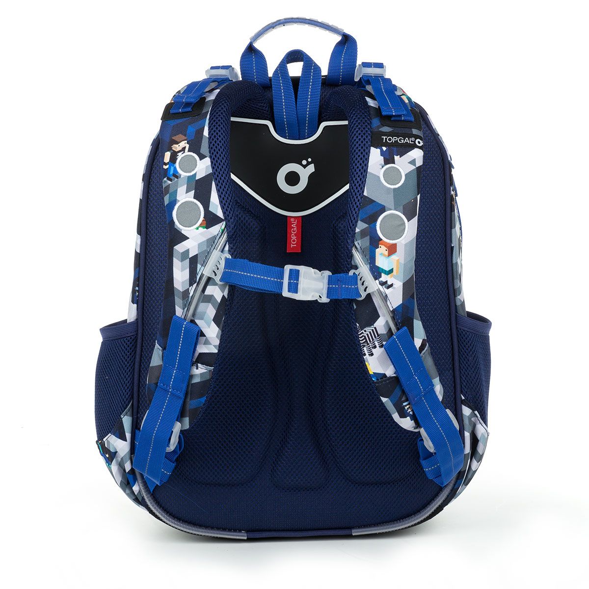 Lisovaná chrbtová časť tašky je anatomicky tvarovaná. Spolu s ergonomicky tvarovanými hrudnými popruhmi, ktoré sa dajú utiahnuť v hornej aj spodnej časti, zaistia správne nosenie na chrbte školáka aj pri dennom náklade niekoľkých kíl učenia. Navyše sme do koncov popruhov všili magnet, vďaka ktorému ich môžete upevniť k telu popruhu tak, aby voľne neviali okolo tela školáka. Výškovo nastaviteľný hrudný pásik potom zaručí, že sa ramenné popruhy nebudú skĺzávať z chrbta ani drobnému prváčikovi.