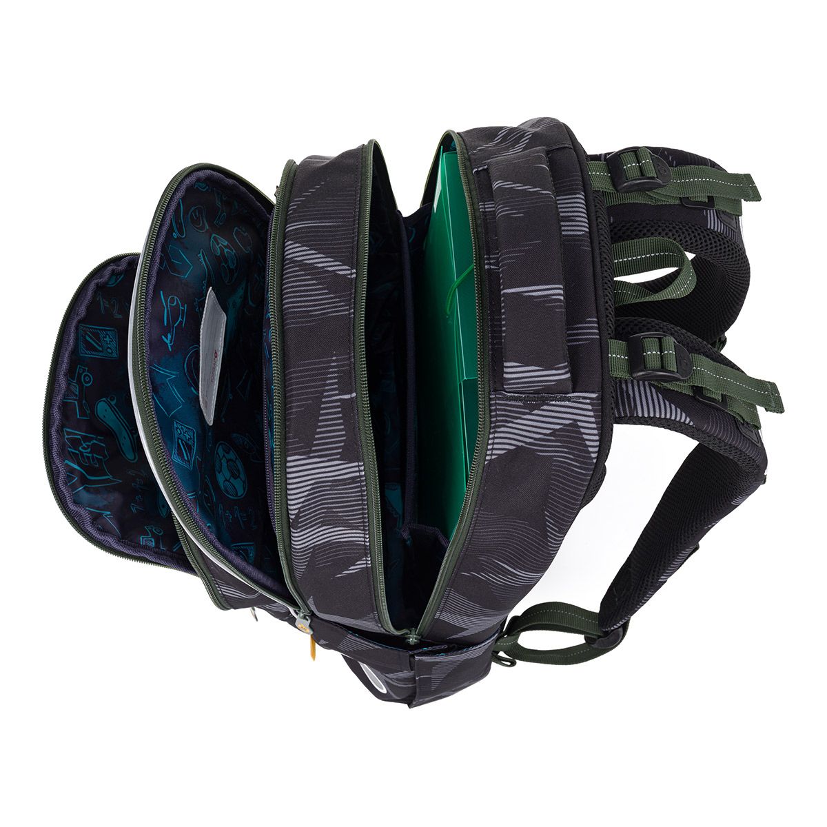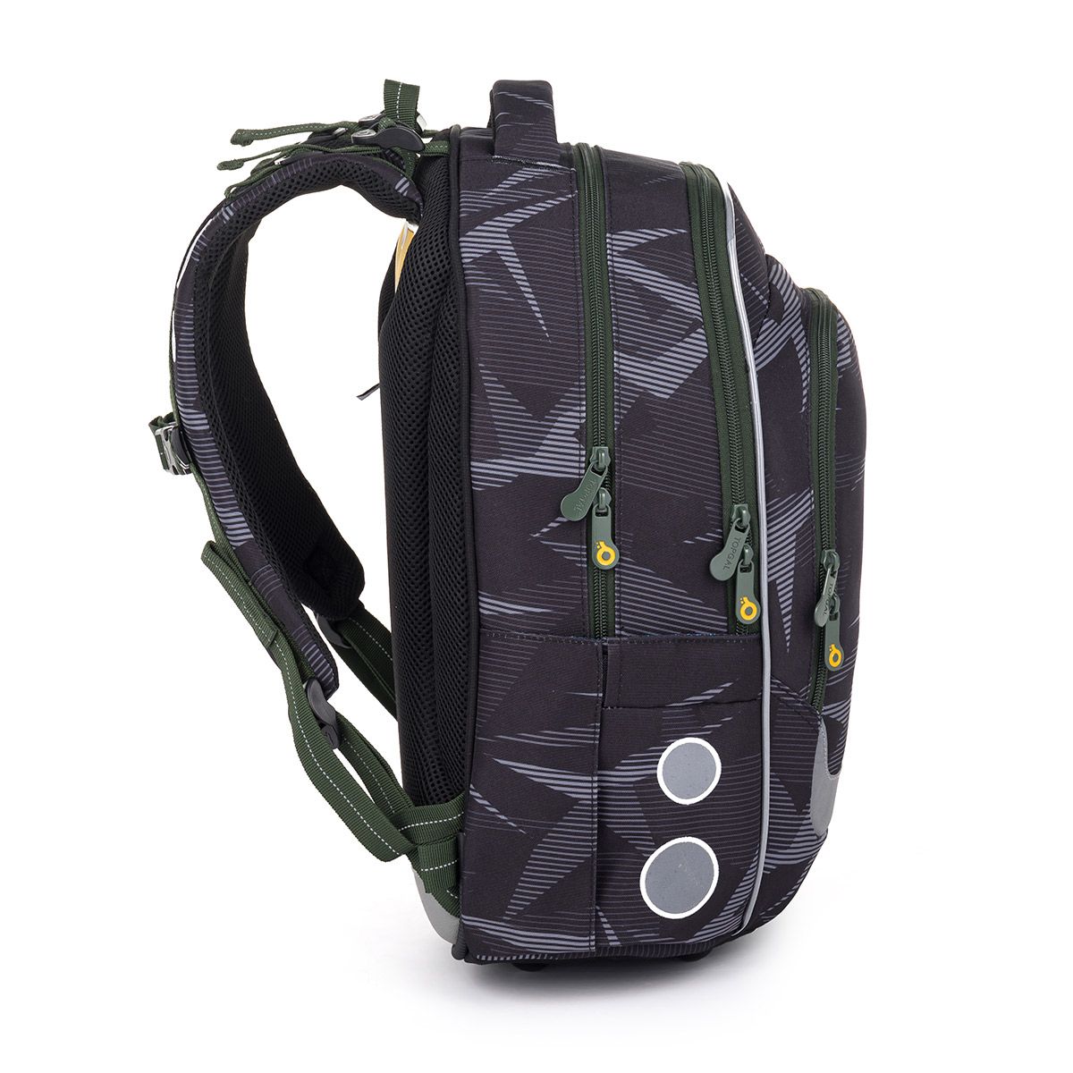 Dvoukomorový model LORI je novinkou sezony 2025 a se svým 27 litrovým objemem poslouží minimálně do páté třídy. Proto jsme zvolili tmavé tóny, oživené khaki zipem a šedými prvky.