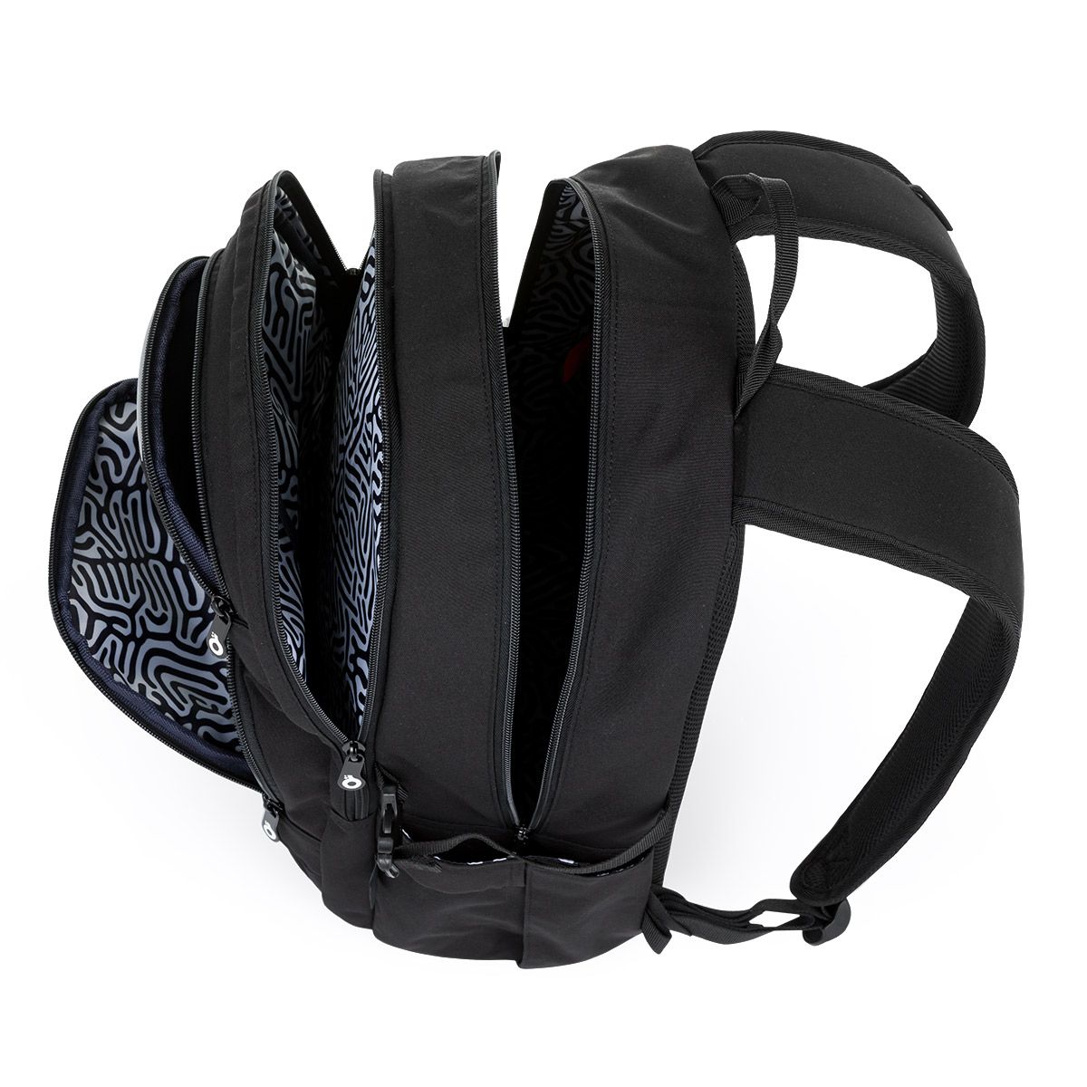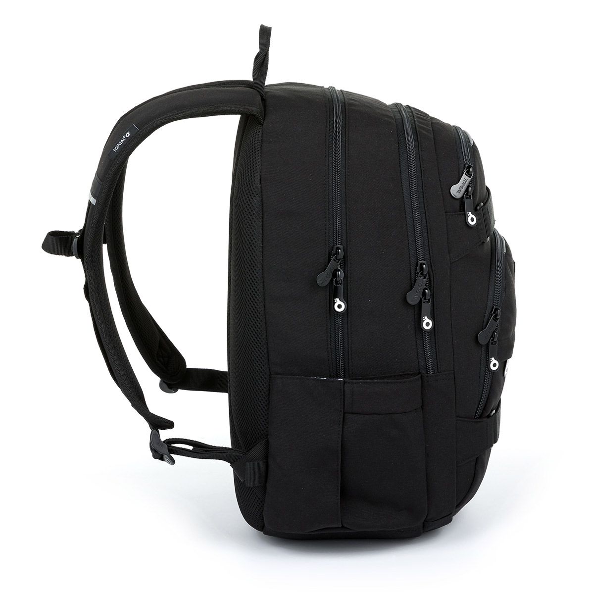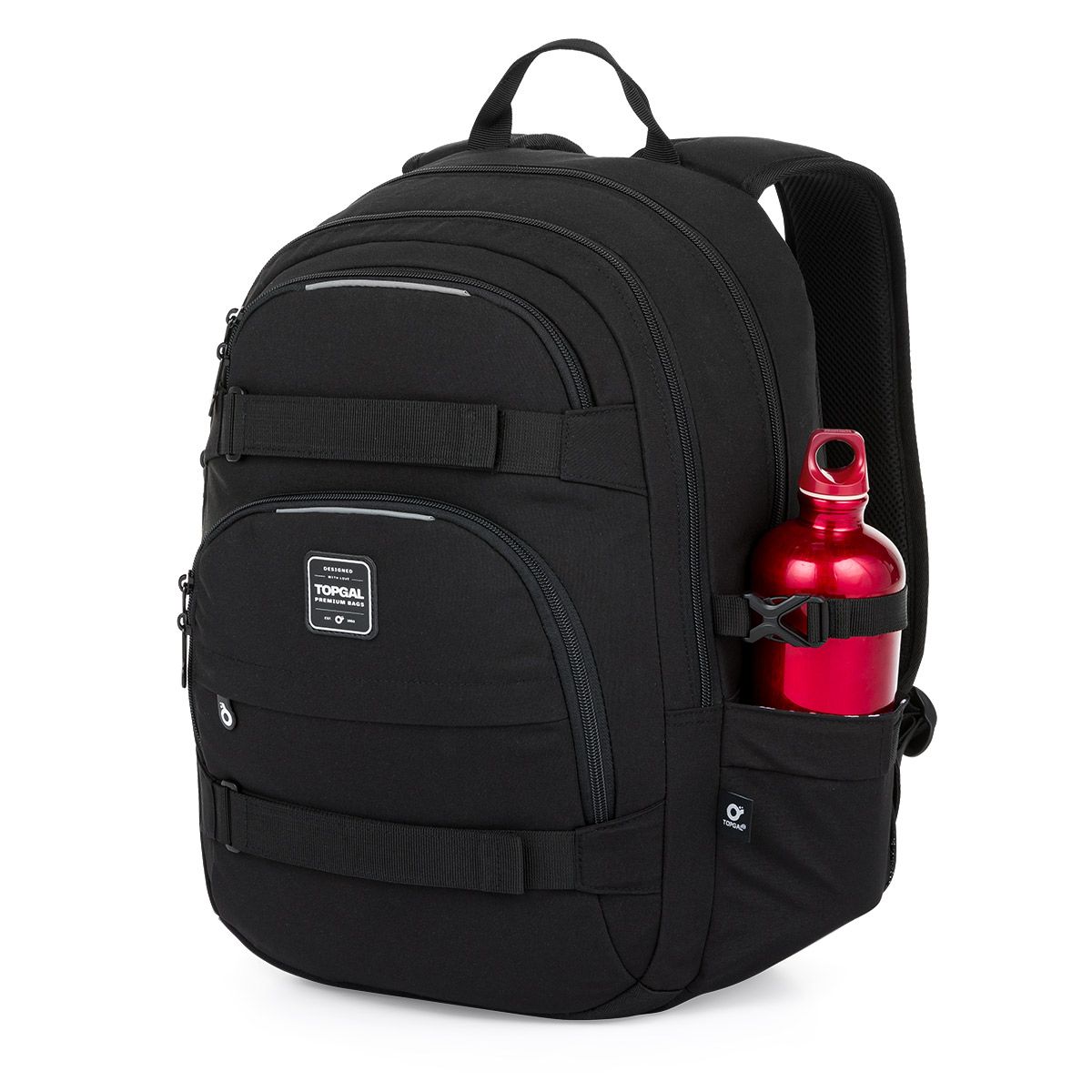 Objemný dvojkomorový batoh v obľúbenej čiernej. Chrbát batohu je polstrovaný s anatomicky tvarovaný. Vnútri druhej komory nájdete vrecko na zips a karabínu na kľúče.