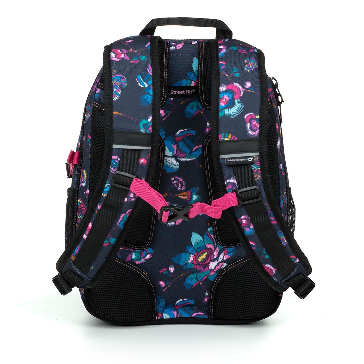 Ani na študentských batohoch nešetríme polstrovaním a výstužou chrbta. Tie sú práve v období dospievania a s ním spojeným rastom obzvlášť potrebné. Ergonomicky tvarované a výškovo nastaviteľné ramenné popruhy sme navyše doplnili posuvnou hrudnou prackou, ktorá uľahčí váhe batohu.