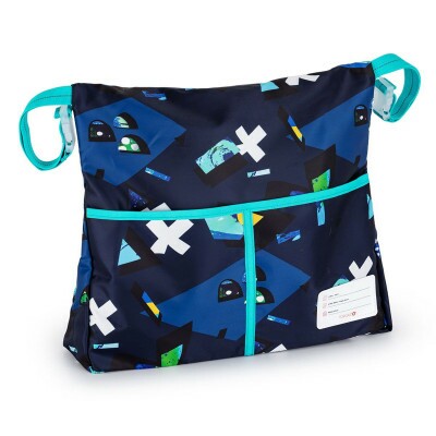 Jedno veľké a dve menšie vrecká sú určené na uschovanie drobností každého školáka (vodové farby a iné školské pomôcky). Horné veľké vrecko je uzatvárateľné na zips, dve bočné vrecká sú voľne prístupné. Vrecko je opatrené menovkou a popruhmi s prackami pre uchytenie k lavici.