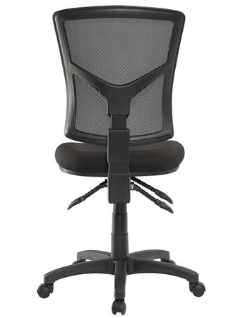 Kancelárska stolička s pohodlným sedadlom dizajnové prevedenie s hrubým, tvarovaným polstrovaním sedadla pre vyšší komfort pri sedení výškové nastavenie pomocou plynového piestu vyvýšené, priedušné sieťované operadlo výšku operadla je možné nastaviť pomocou račňového mechanizmu: jednoducho, jedným pohybom asynchrónna mechanika nastaviteľný uhol operadla nastaviteľný uhol sedadla dodáva sa bez opierok nosnosť: 130 kg Poťah: sedadlo: protioderová látka operadlo: napnutá sieťovaná tkanina